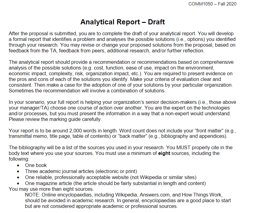 Comm 1050 Fall 2020 Analytical Report Draft After Chegg Com